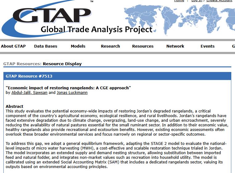 Abdul-Jalil, Sawsan / Luckmann, Jonas. “Economic impact of restoring rangelands: A CGE approach.” Conference paper: 28th Annual Conference on Global Economic Analysis (Kigali, Rwanda) 2025.